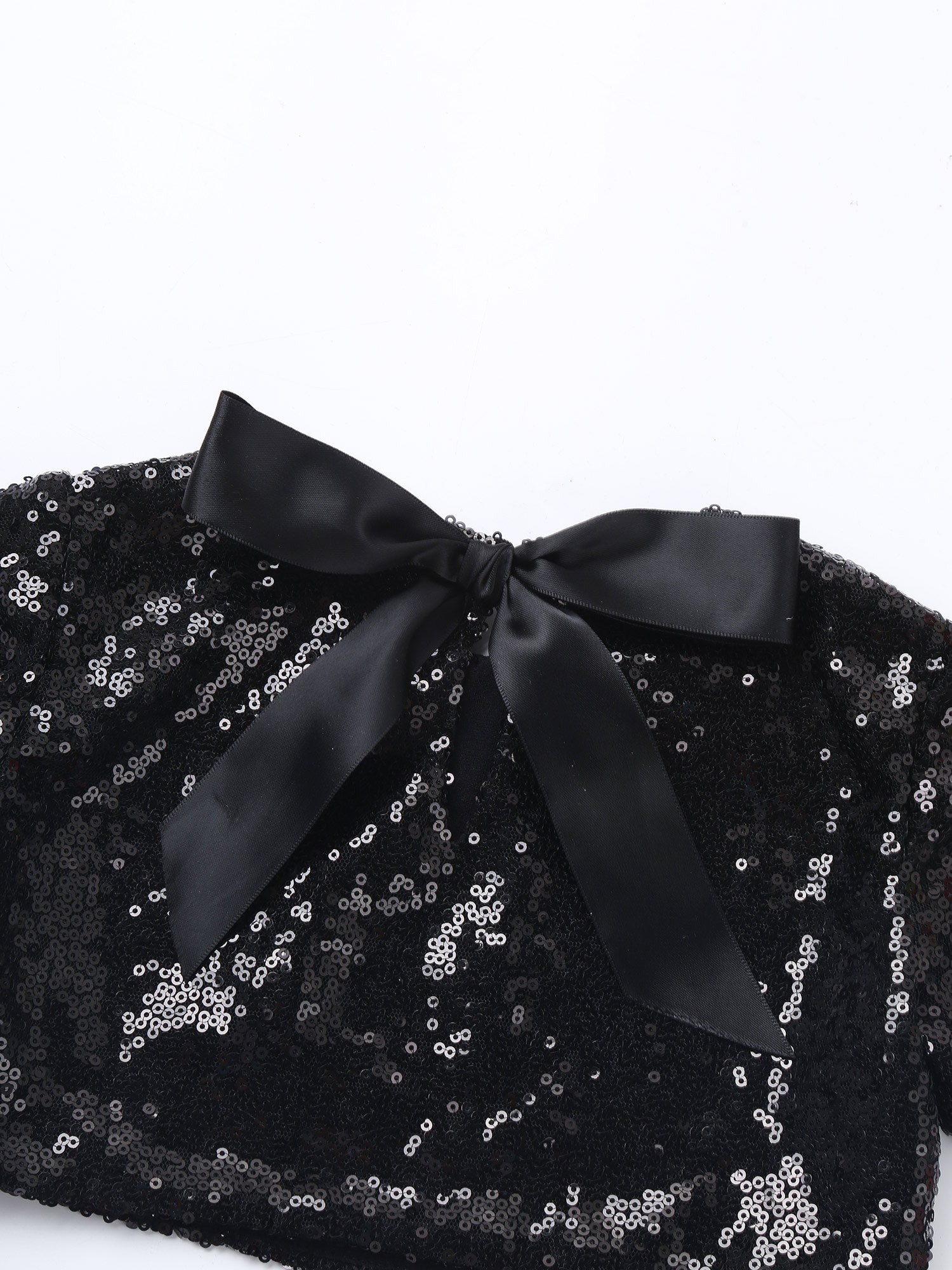 Круглый вырез, короткие рукава, Замочная скважина на спине, Блестящие Блестки, укороченный топ, делает девочку более привлекательной.