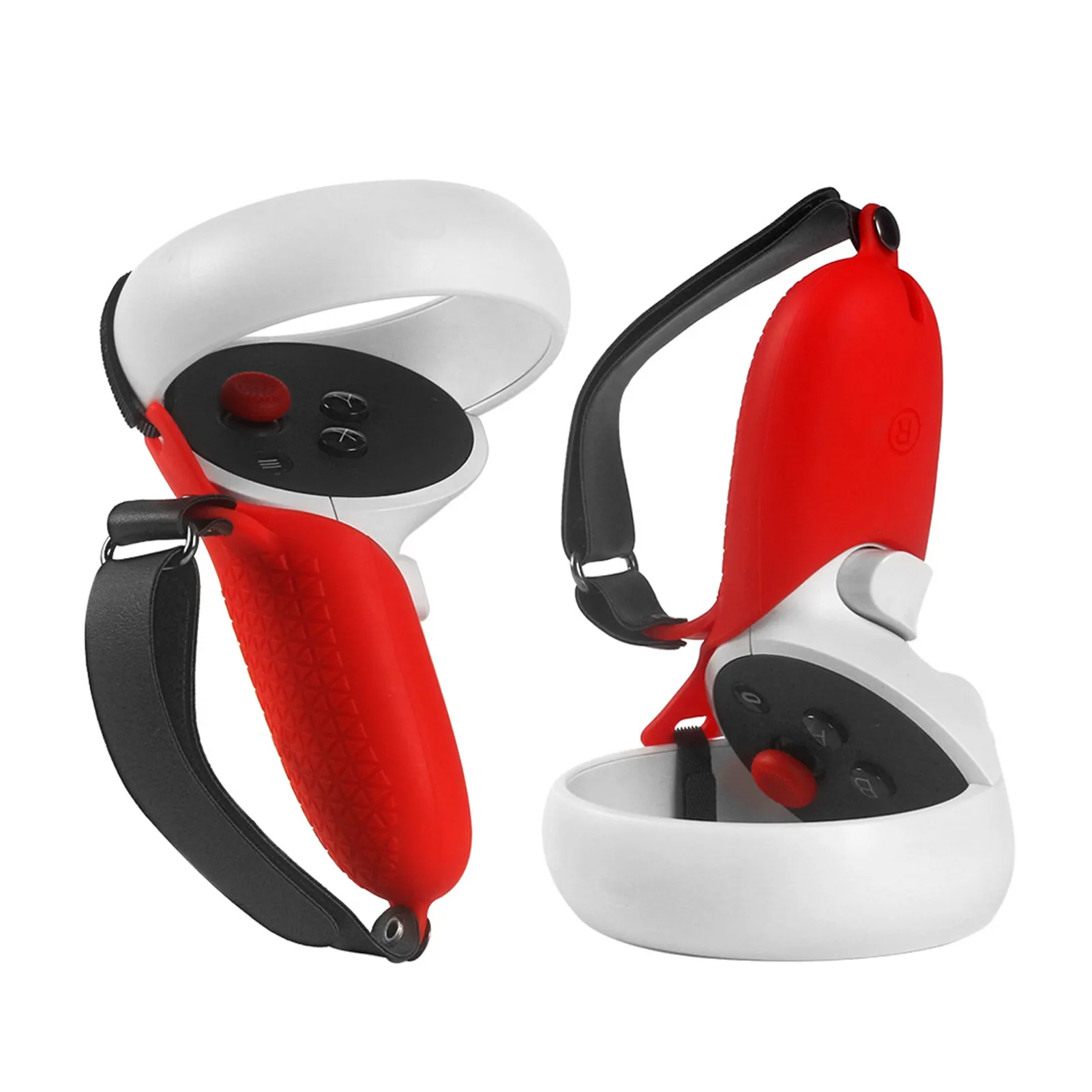 1. Профессиональный дизайн: конструкция крышки ручки сенсорного контроллера может предотвратить удар, царапины и загрязнение контроллера Oculus quest 2 VR. Гибкий и регулируемый браслет позволяет больше не беспокоиться о ослаблении контроллера при бросании чего-то в VR, что значительно улучшает ощущение погружения.2. Из-за ручного измерения, продукт имеет некоторые погрешности в размере.