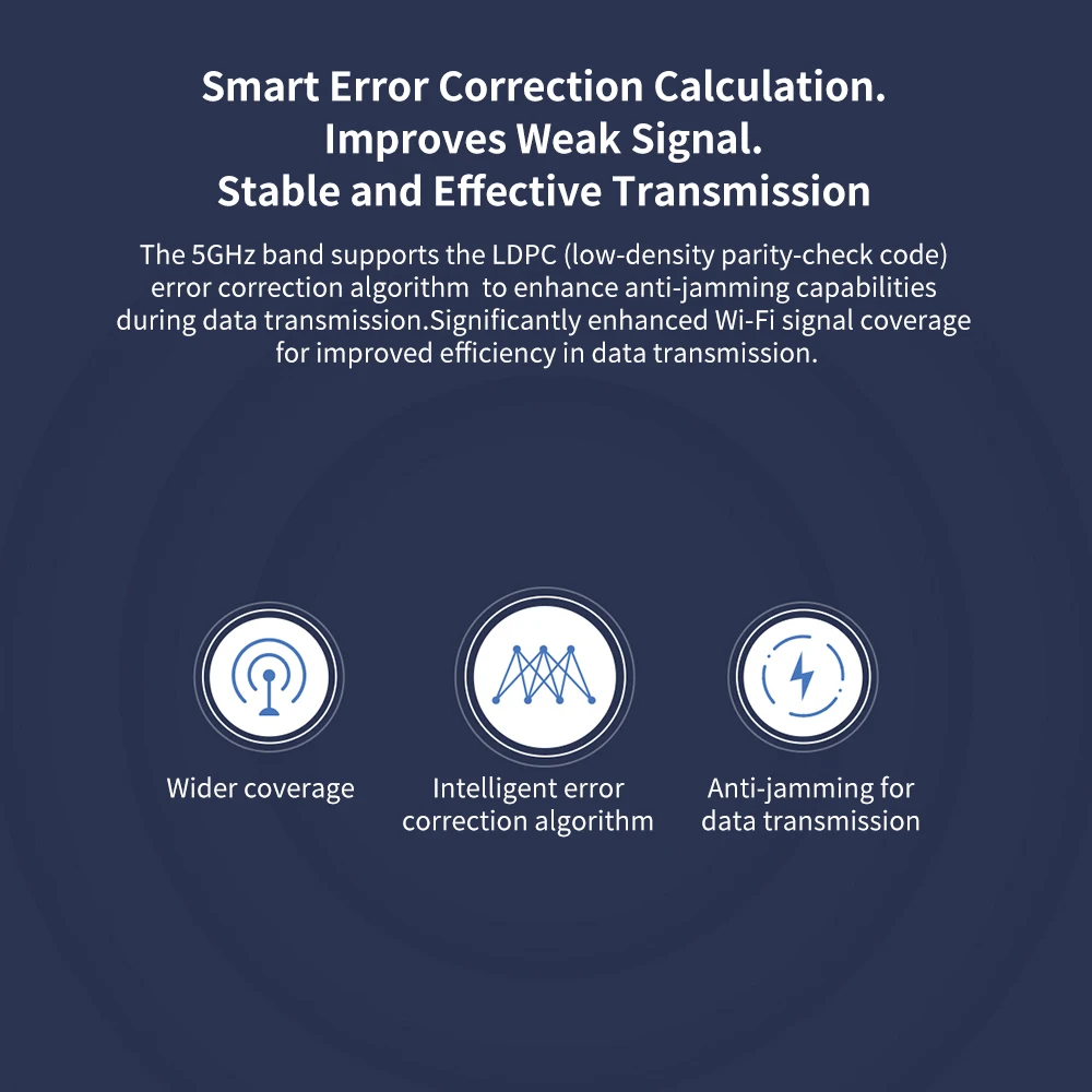 Частотный диапазон 5 ГГц поддерживает LDPC (контрольный код с низкой плотностью) алгоритм коррекции ошибок,