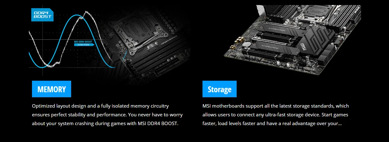 DDR4 MEMORY:4200+(OC)/ 4000(OC)/ 3800 (OC)/ 3733(OC)/ 3600(OC)/ 3466(OC)/ 3400(OC)/ 3333(OC)/ 3300(OC)/ 3200(OC)/ 3000(OC)/ 2933/ 2666/ 2400/ 2133 MHz