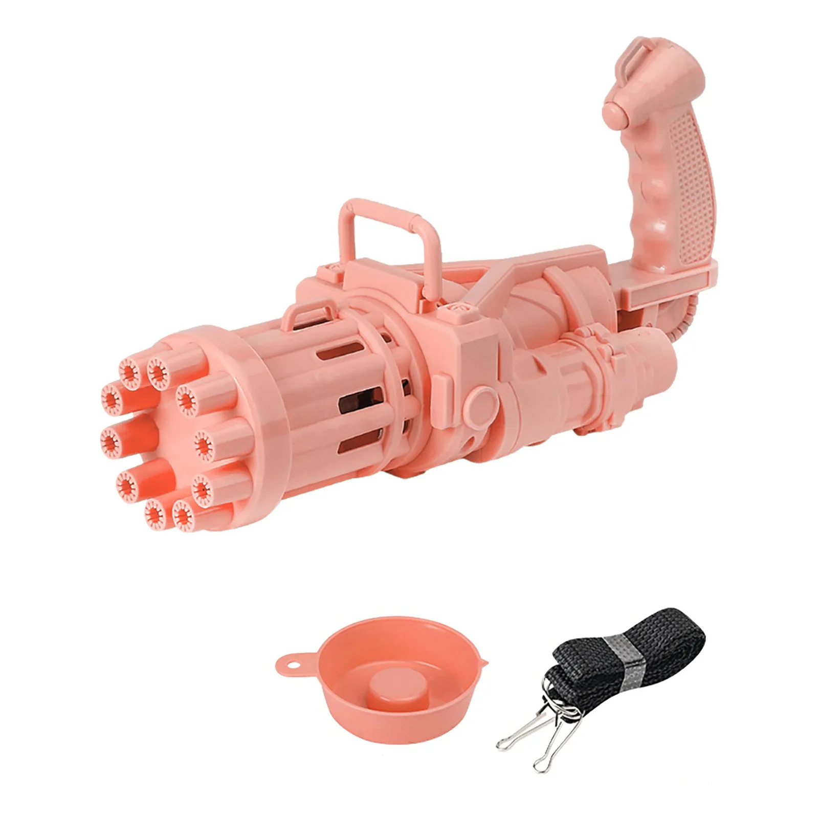 Лучшие эмоции для Вас и ваших детей. Игрушка-генератор мыльных пузырей Миниган (или пулемет Гатлинга) с 8 отверстиями для запуска пузырей! Сотни мыльных шариков пускаются в воздух при одном лишь нажатии на кнопку, от такого занятия будет сложно оторваться не только ребенку, но и взрослому. Как он работает: Вы наливаете в емкость мыльный раствор (идет в комплекте к минигану), погружаете отверстия пулемета в раствор и нажимаете кнопку на ручке. Мощный поток воздуха выдувает огромное количество пузырей из 8 стволов сразу.