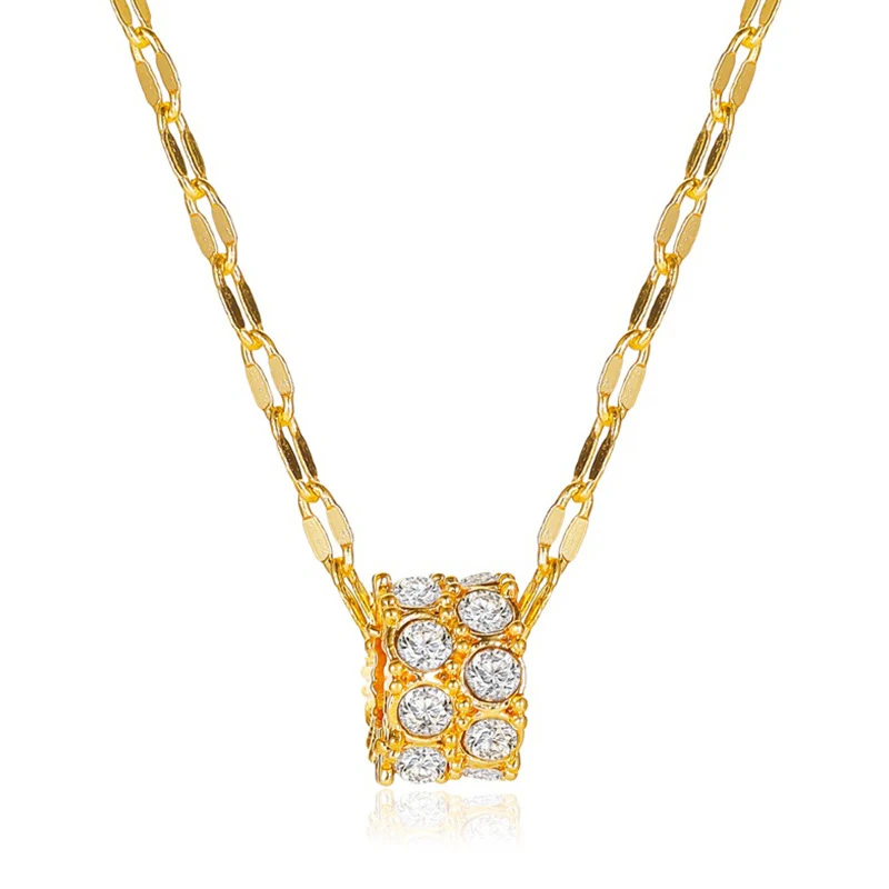 Изготовлен из качественного сплава, круглой формы, кристаллической шипованной, позолоченной подвеской.