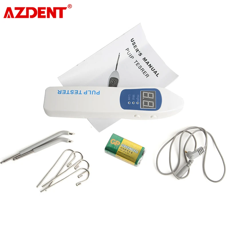 Характеристика: 1. Предустановленный режим скорости (высокая-средняя-Низкая скорость). Нежный импульсный стимулятор начинает увеличиваться со скоростью 2. Специально разработан для комфорта пациента. Если больной указывает на восприятие, просто отпустите кнопку. Стимулятор немедленно останавливается, но цифры остаются замороженными на лице около 3 минут. 3. Удобно работать Максимальный стимул-80. Между 0-40, больной чувствует боль и анестезию, живой нерв зубов. Между 40-80, с вышеуказанной реакцией, часть зубов нерва омертвевшей 80, без вышеуказанной реакции, нерв мертвых зубов. 4. Устройство отключается через три минуты после запуска (без впустую батареи) 5. Батарея с батарейным питанием, Стандартный 9-вольтовой Батарея, очень экономичный Характеристики: 1. Выход: 9 В постоянного тока 2. Ток: 50 мА 3. Напряжение диапазон: DC 6,0-10,0 V 4. Размер: 186*38*24 мм 5. Вес нетто: 220 г Упаковочный лист: 1. Основной блок 1 шт. 2. Шнур для тестирования 1 шт. 3. Испытательный электрод 1 шт. (длинный) 4. Испытательный электрод 1 шт. (короткий) 5. Нержавеющий крюк 4 шт. 6. Руководство пользователя 1 шт.