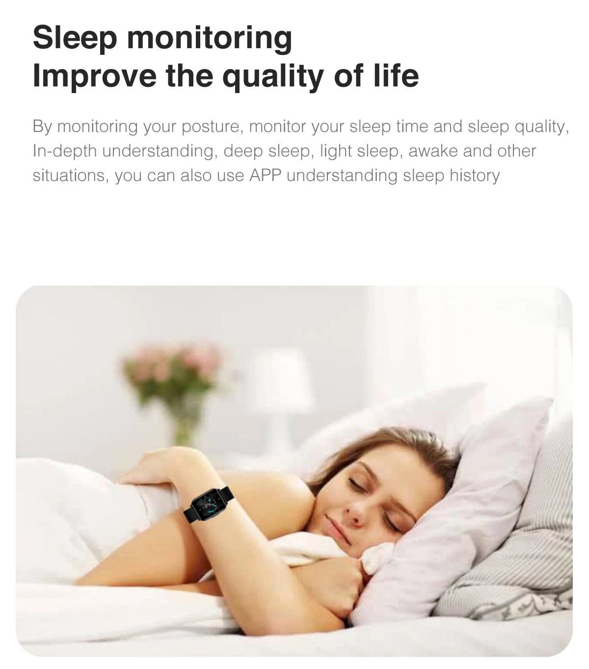 - By monitoring your posture, monitor your sleep time and sleep quality, In-depth understanding, deep sleep, light sleep, awake and other situations, you can also use APP understanding sleep history.