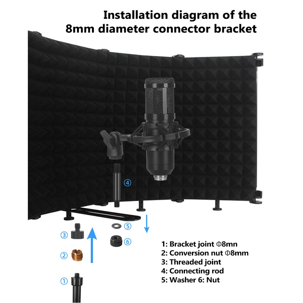 Это портативная Звукопоглощающая пластина микрофона, изготовленная из внешней панели ABS и внутренней пены высокой плотности EVA. Внешний вид приличный, портативный и лаконичный. Благодаря горизонтальной и вертикальной ссылке вы можете разместить микрофон на соответствующем месте. Только таким образом вы можете эффективно уменьшить отражение и шум во время записи, достигнув хорошей записи r-esult.