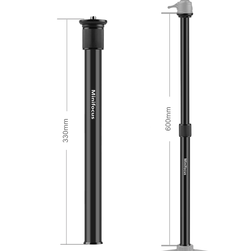 Изготовлен из качественного материала, прочная конструкция и высокая прочность. Расширитель 2 секций, регулируемая длина от 330 мм до 660 мм. Регулируемая длина расширения может значительно удовлетворить ваши потребности в использовании. С 1/4 дюймовым винтовым креплением на нижней части, который может быть установлен на штативе или подставке. Идеальный аксессуар для увеличения высоты штатива.