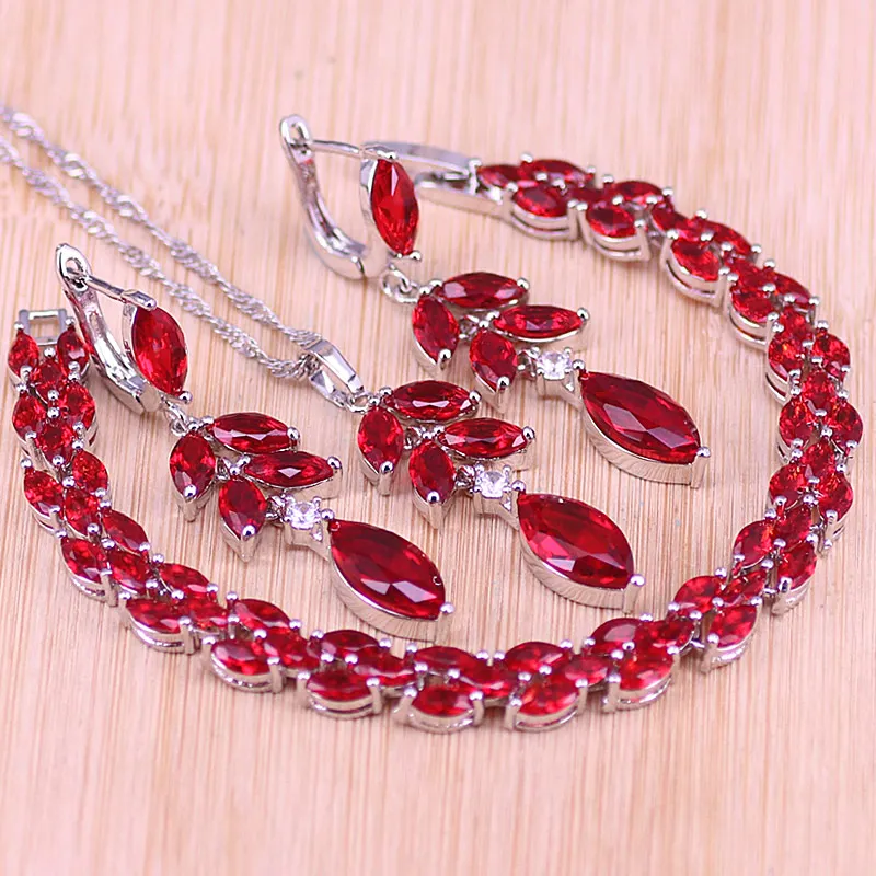 Risenj роскошный набор украшений для женщин с красным цирконием из стерлингового серебра 925 пробы, серьги, кольцо, браслет, набор свадебных украшений