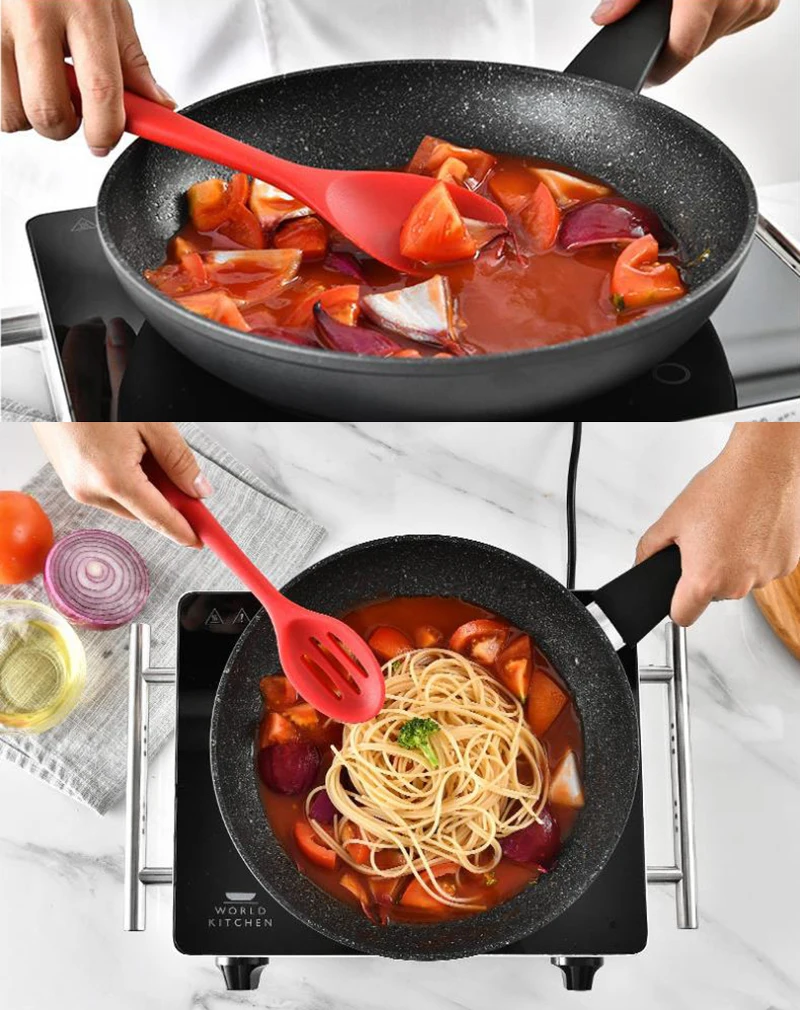Особенности: 1. Жаростойкие: вся посуда имеет термостойкую температуру от-40 до 230 градусов Цельсия, их также можно варить и стерилизовать. 2. Набор кухонной посуды из силикона-кухонный помощник, идеально подходит для многих видов продуктов и приготовления пищи; Для жарки, перемешивания крема, масла, мороженого и т. д. 3. Защита окружающей среды, нетоксичный, термостойкий, антипригарный, прочный, безопасный и простой в чистке. 4. В комплект входят: шпатель, щетка для заостренного шпателя, Круглый Тернер, ковш, бигуди для яиц, ложка, зажим для еды, коготь для спагетти и т. Д. Характеристики: Название: набор кухонной утвари. Материал: силикон. Цвет: красный, черный, розовый, зеленый, радужный. Размер: как показано на рисунке. Посылка включает в себя: Наборы инструментов для приготовления пищи x 1 набор.