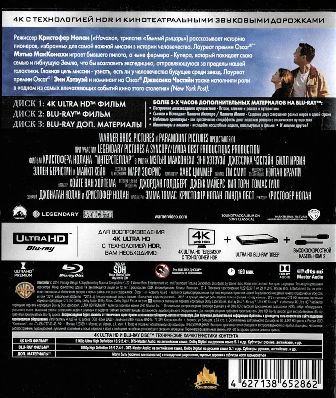 Аннотация: Мэттью МакКонахи ("Время убивать"), Энн Хэтэуэй ("Темный рыцарь: Возрождение легенды"), Майкл Кейн ("Престиж") в фантастической драме Кристофера Нолана "Интерстеллар".<br><br> Когда засуха приводит человечество к продовольственному кризису, коллектив исследователей и учёных отправляется сквозь червоточину (которая предположительно соединяет области пространства-времени через большое расстояние) в путешествие, чтобы превзойти прежние ограничения для космических путешествий человека и переселить человечество на другую планету.
