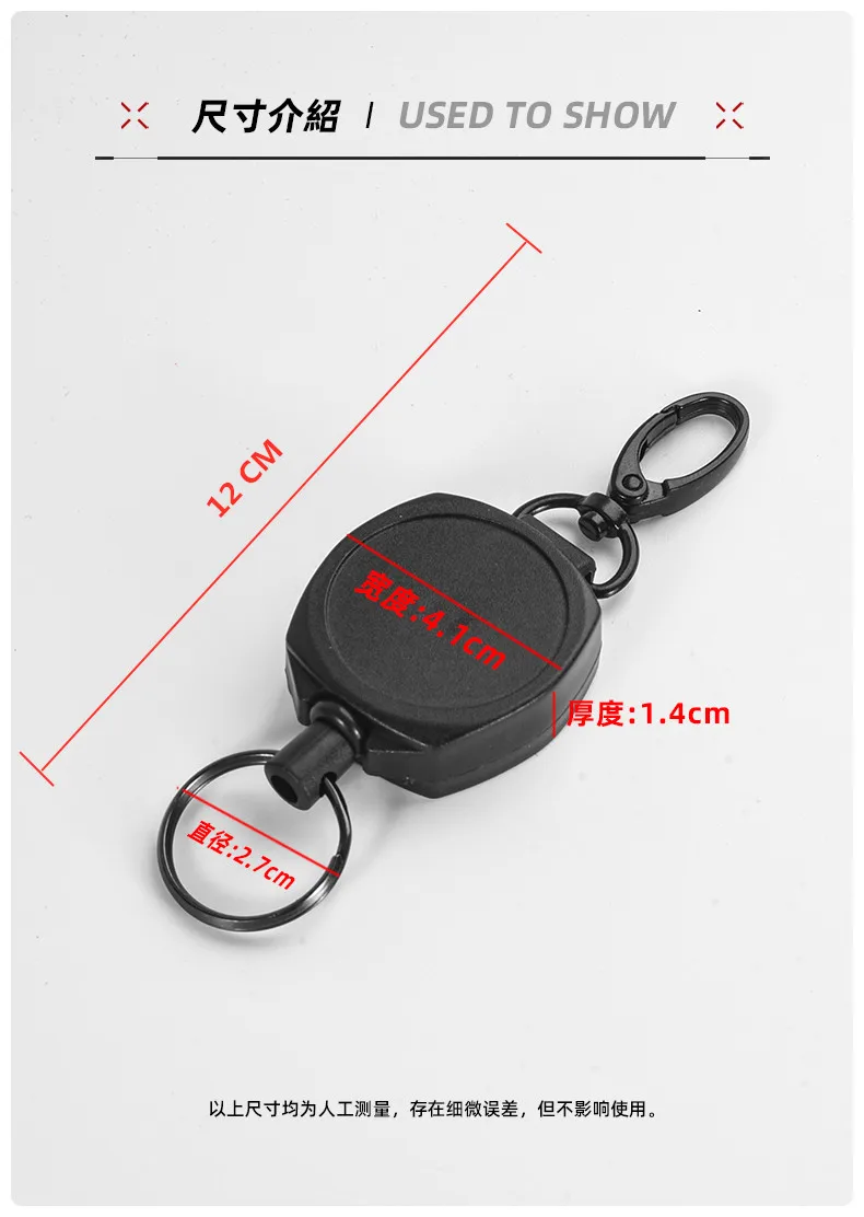 Высокая прочность на растяжениеМаксимальная длина вытягивания: 65-70 смТрос около 55-60 см,Брелок около 10 см, всего около 70 см