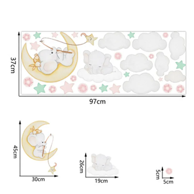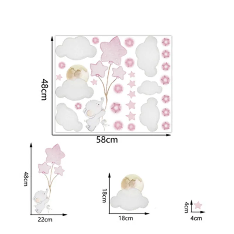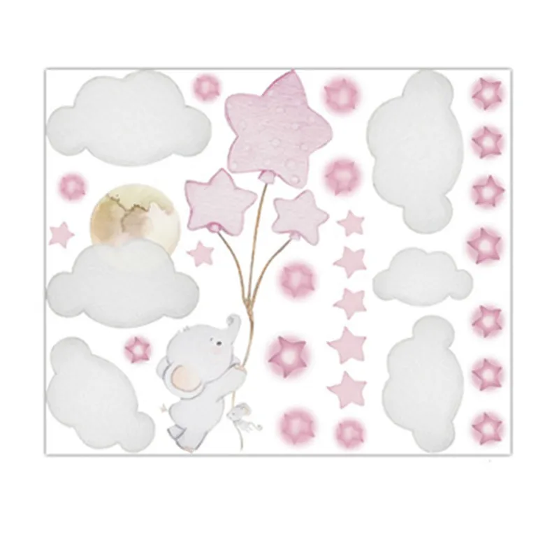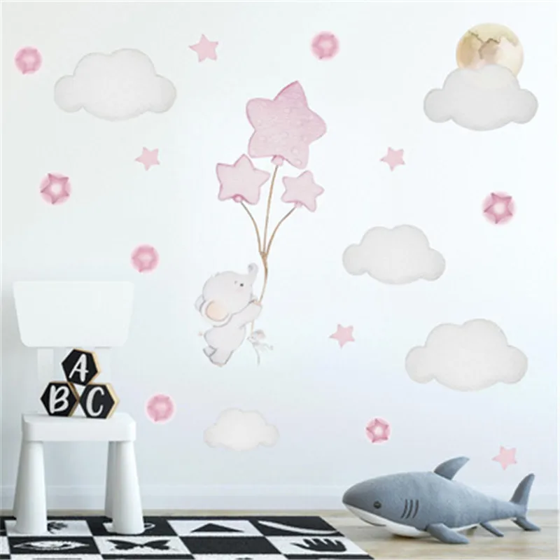 Cartoon Cloud Stars Elephant Wall Stickers For Kids Room Baby Girl Room Decorative Sticker Nursery Bedroom Wall Decal Home Decor
