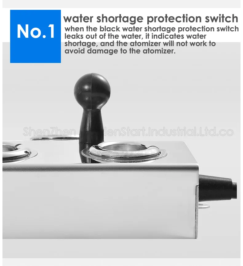 1. Атомайзер не имеет прямого доступа к источнику питания 110 В или 220 В, необходимо переключать источник питания или адаптер на 48 В. Если у вас нет соответствующего переключателя питания или адаптера, пожалуйста, выберите тип «с переключателем питания». 2. Переключение источника питания не является водонепроницаемым, не может погружаться в воду или туман.