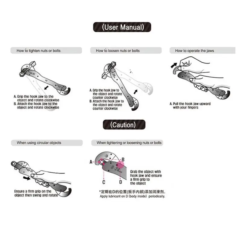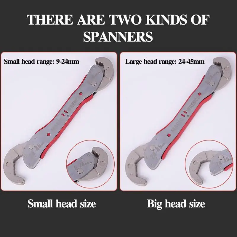 Он совместим со всеми видами болтов и гаек, размер гаечного ключа может быть увеличен от 9 до 45 мм.