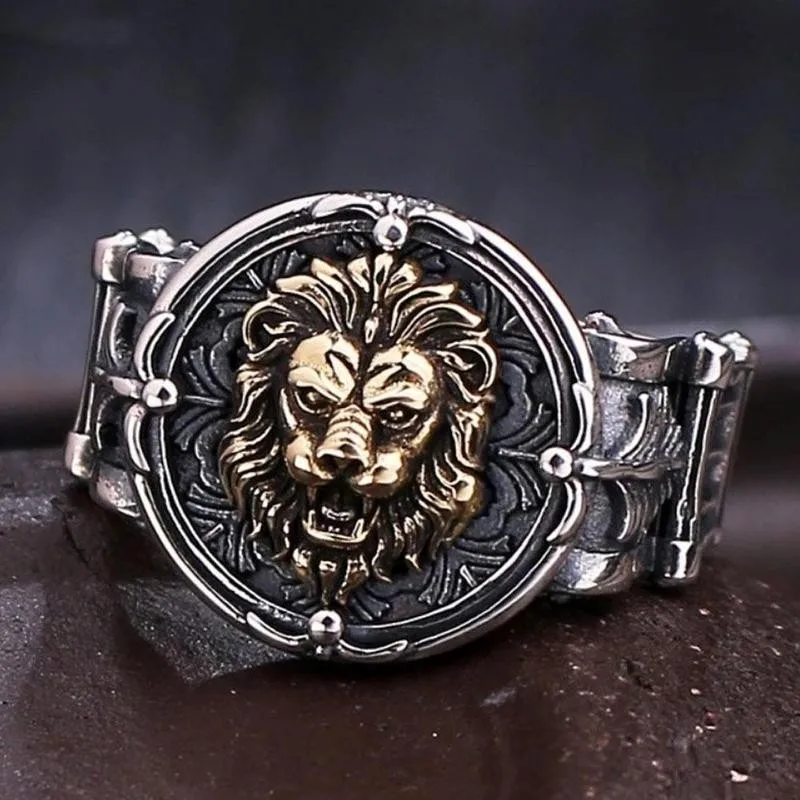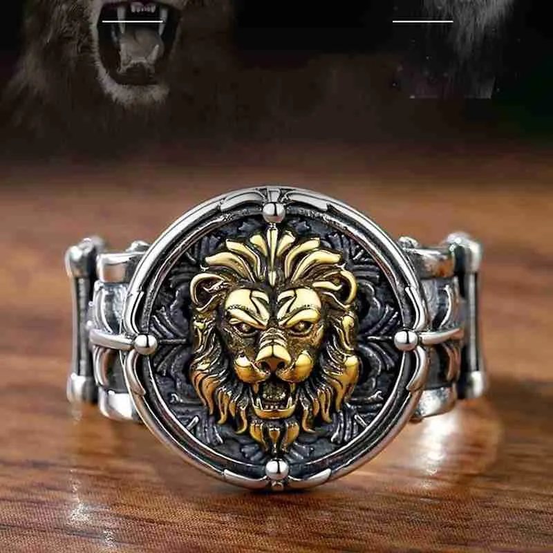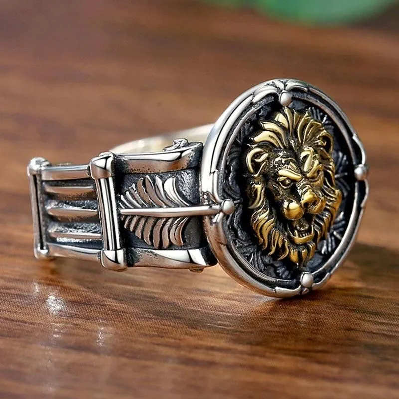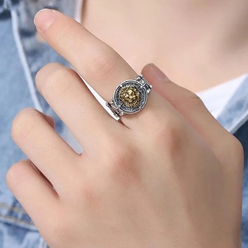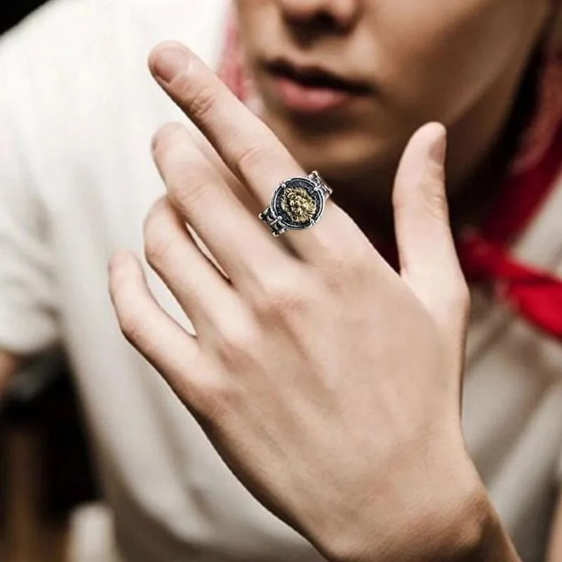 Винтажное кольцо с Львом для мужчин, готическое панк, хип-хоп, байкерское, рок кольцо на палец, регулируемое отверстие, властное мужское кольцо, ювелирное изделие