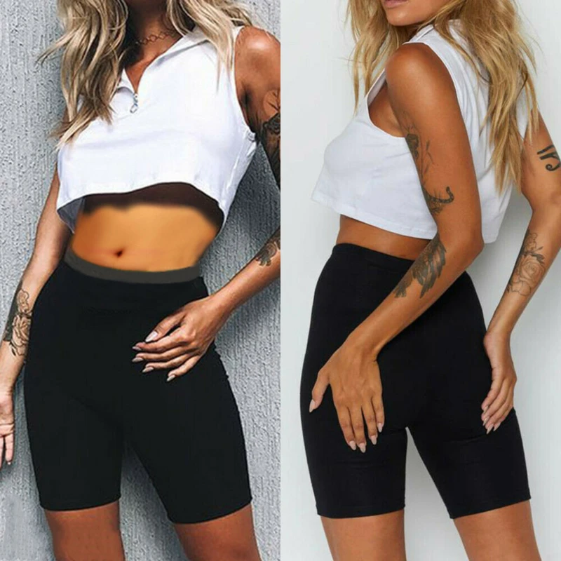 Summer Women's Cycling Shorts Stretch Plain Casual Sports Fitness Ladies Elastic Waist Elastic Black Slim Shorts