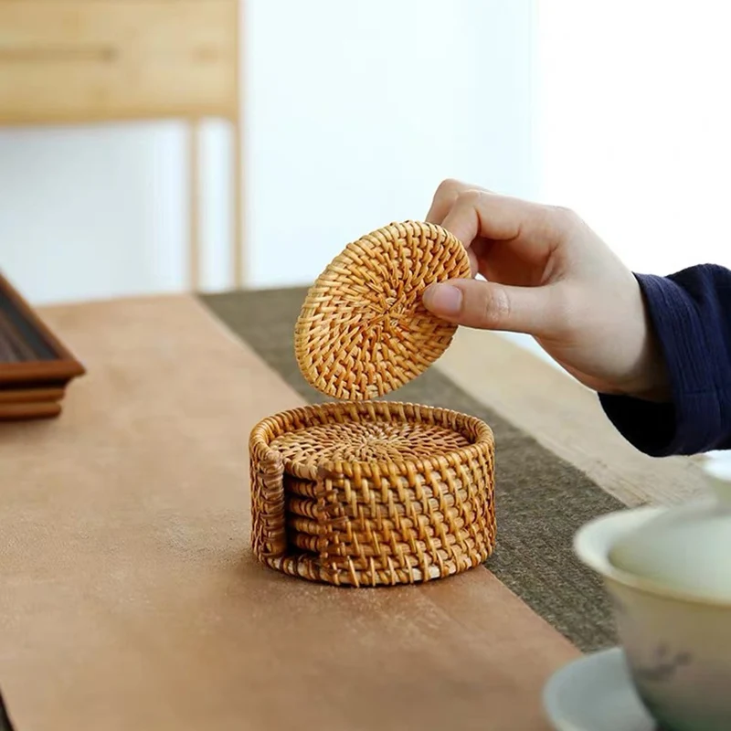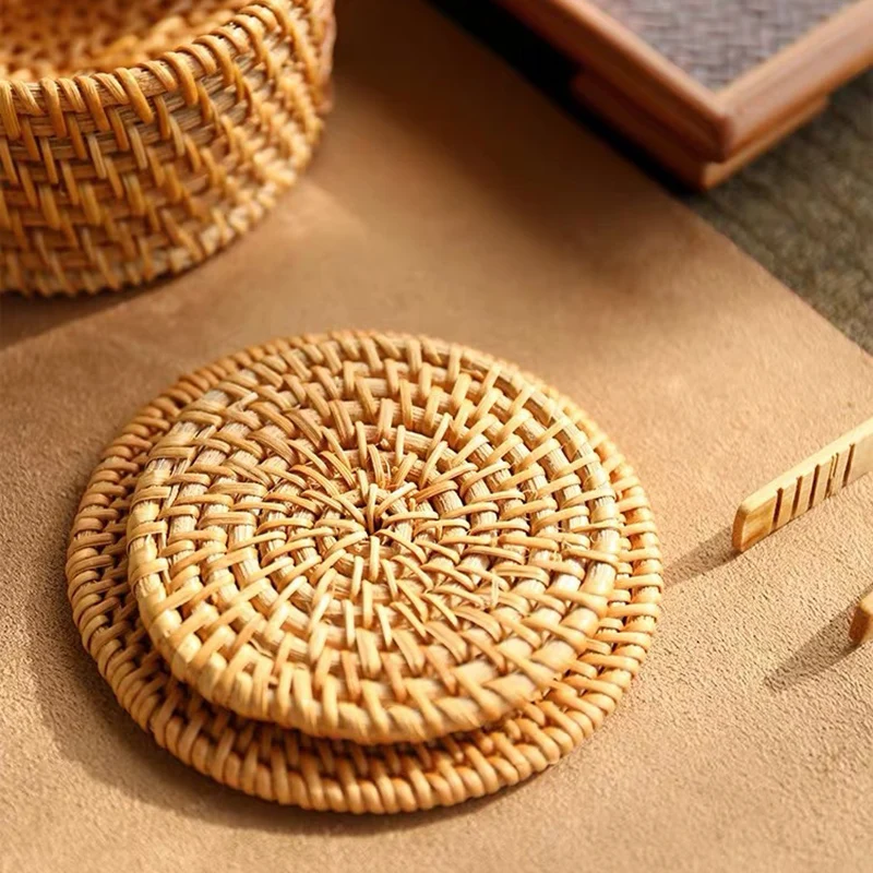 Джутовые тканые прихватки, круглые салфетки, Нескользящие Коврики для стола, ручная работа, подставки, диски, миски, кофейные чашки, чашки