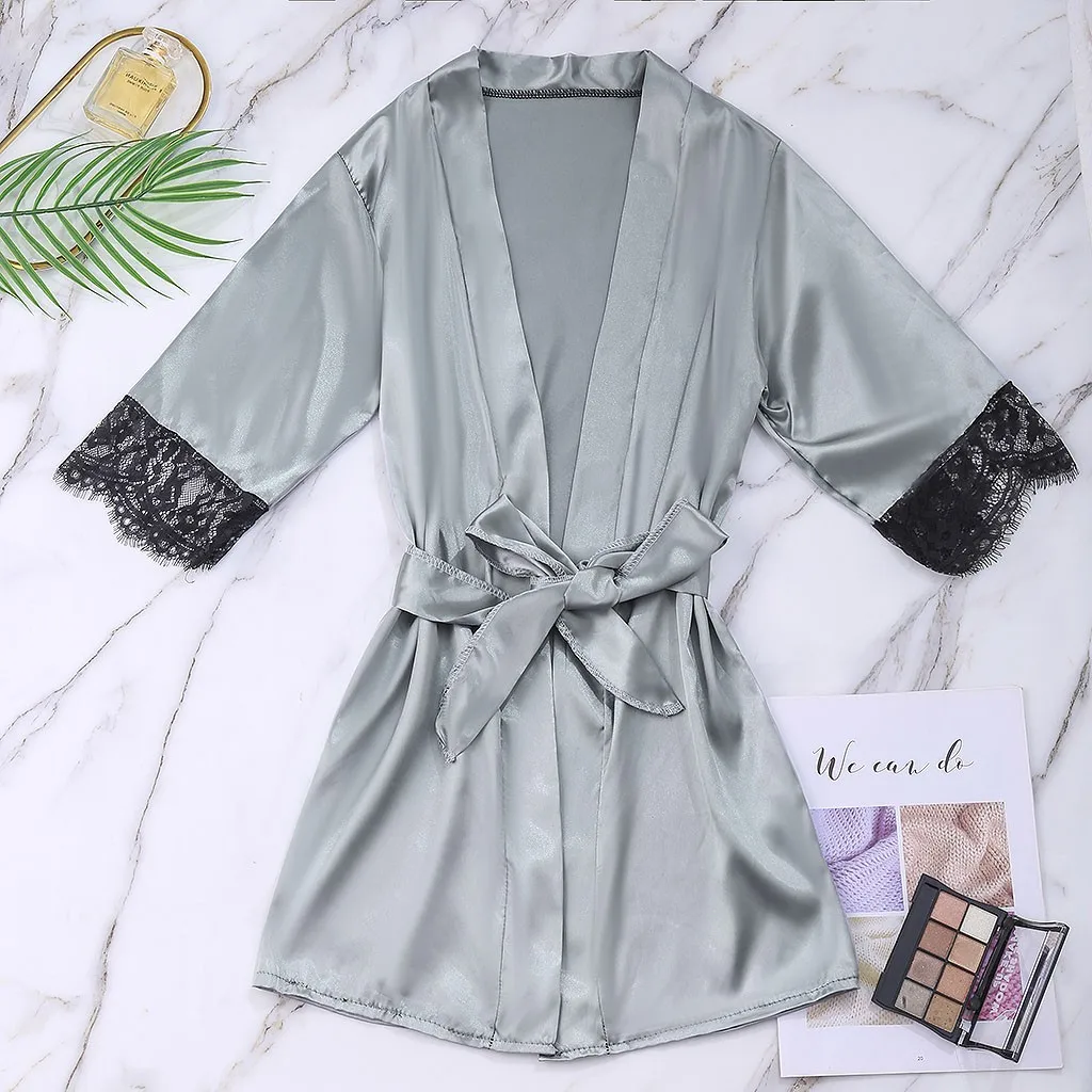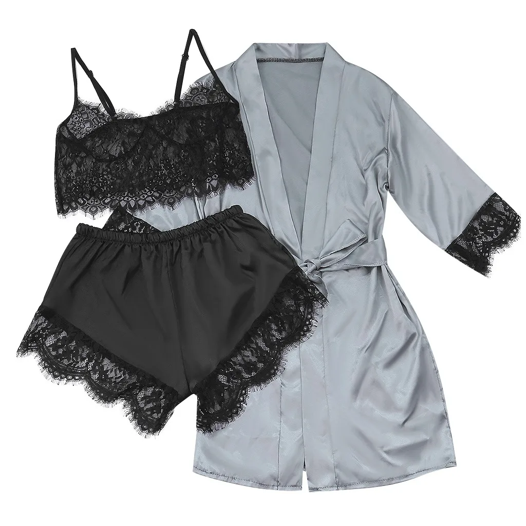 Атласные шелковые пижамы халат кружевное белье женское нижнее белье пижамы брюки с поясом