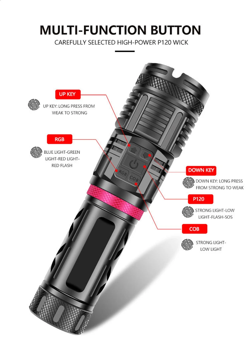 XHP160 4 шестерни (белый светильник): сильный светильник-низкий светильник-вспышка-SOS