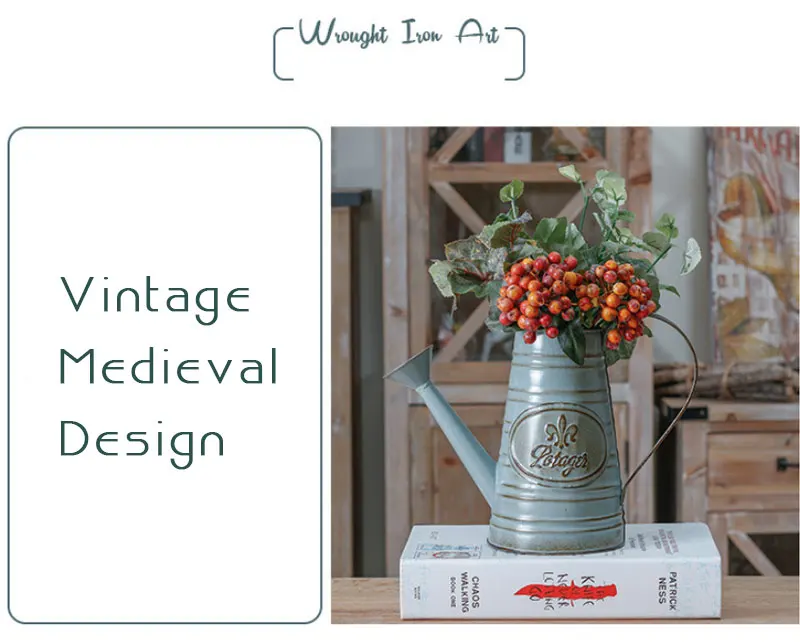 Vase home watering can Decor Chic Galvanised Metal Iron Sprinkled kettle Bucket outdoor Flower Vase Pot Garden Watering Planter