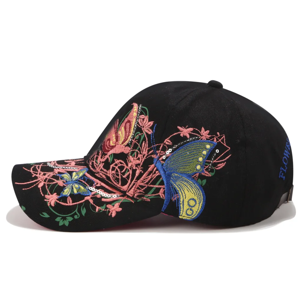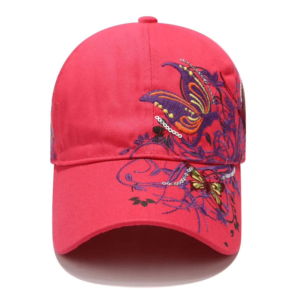 Бейсбольная кепка в Корейском стиле с вышитыми бабочками и блестками, женская кепка с рисунком губной помады
