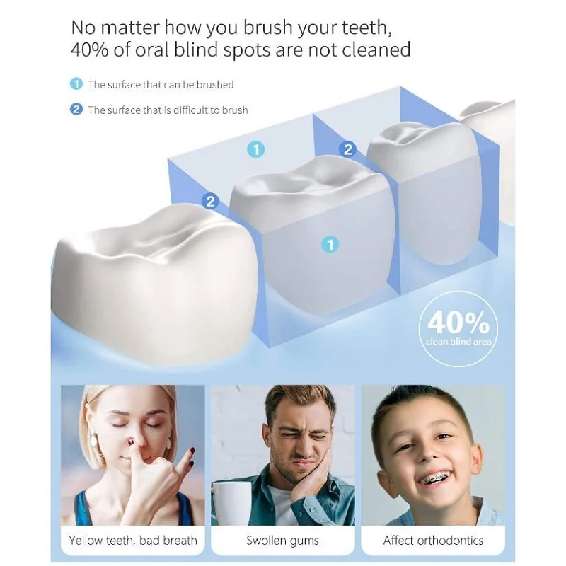 1. Эффективно очищайте пятна вокруг зубов и ортезий, уменьшите Зубное число, предотвратите запах полости рта или плохое дыхание и т. д., проблемы с полостью рта являются хорошим выбором для стоматологов, чтобы рекомендовать ортодонтическим людям