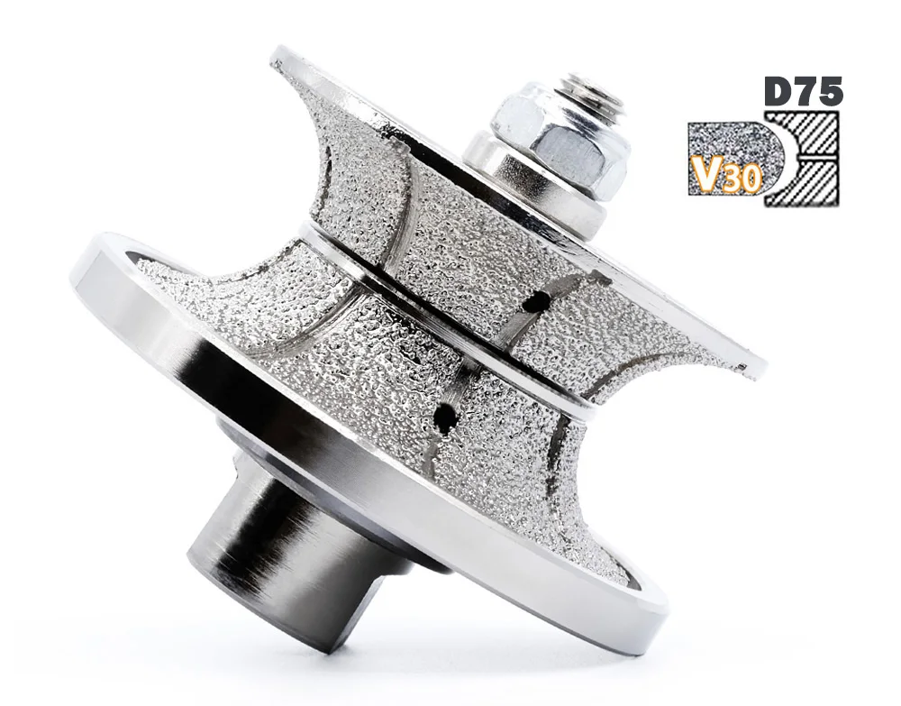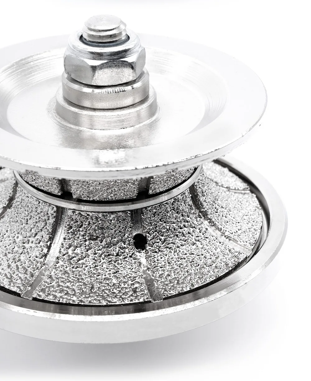 Внутренние водяные отверстия для профильного колеса предназначены для непрерывного потока воды, чтобы сохранить края столешницы непрерывно прохладные влажные и смазанные во время шлифования. Круговая направляющая колеса предназначена для регулирования продольного и бокового движения колеса и обеспечивает большую гибкость и контроль глубины и ширины профиля. Профиль изготовлен с вакуумной паянной технологией, известной прочными связями, износостойкостью и долговечностью. Он обеспечивает длительный срок службы и агрессивную эффективную очистку острых и быстрых порезов камней, таких как гранитный Мрамор Бетон травертин терраццо кварц и т. Д.