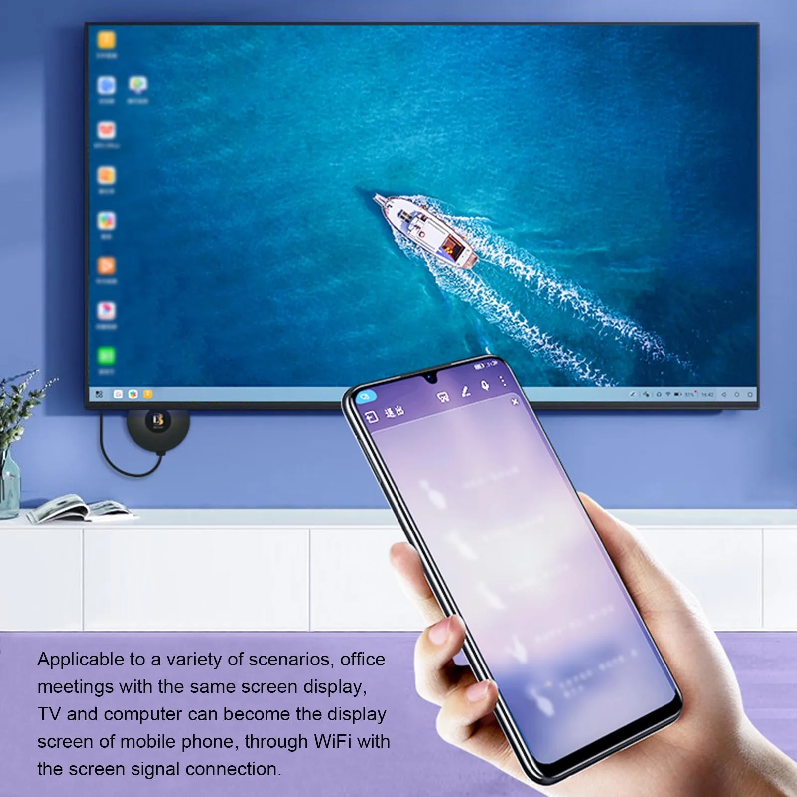 Функции отображения и проекции беспроводного экрана, синхронное зеркалирование смартфонов iOS и Android, весь экран планшета на любой hd-экран телевизора или проектора, Идеально гладкая Презентация PPT и воспроизведение фильмов.