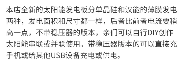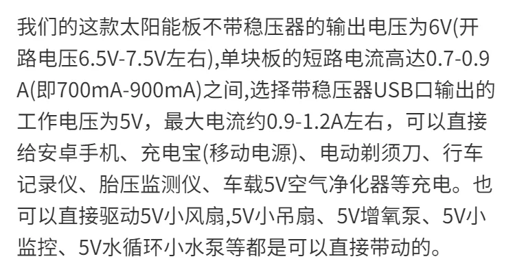О напряжении: Номинальное напряжение фотоэлектрической панели и напряжение батареи должны соответствовать друг другу, соответствовать, например, 6 фотоэлектрических панелей могут только be3.2-3,7 V зарядка батареи, 10VPhotovoltaic панелей может только be6.4-7,4 V зарядка батареи.