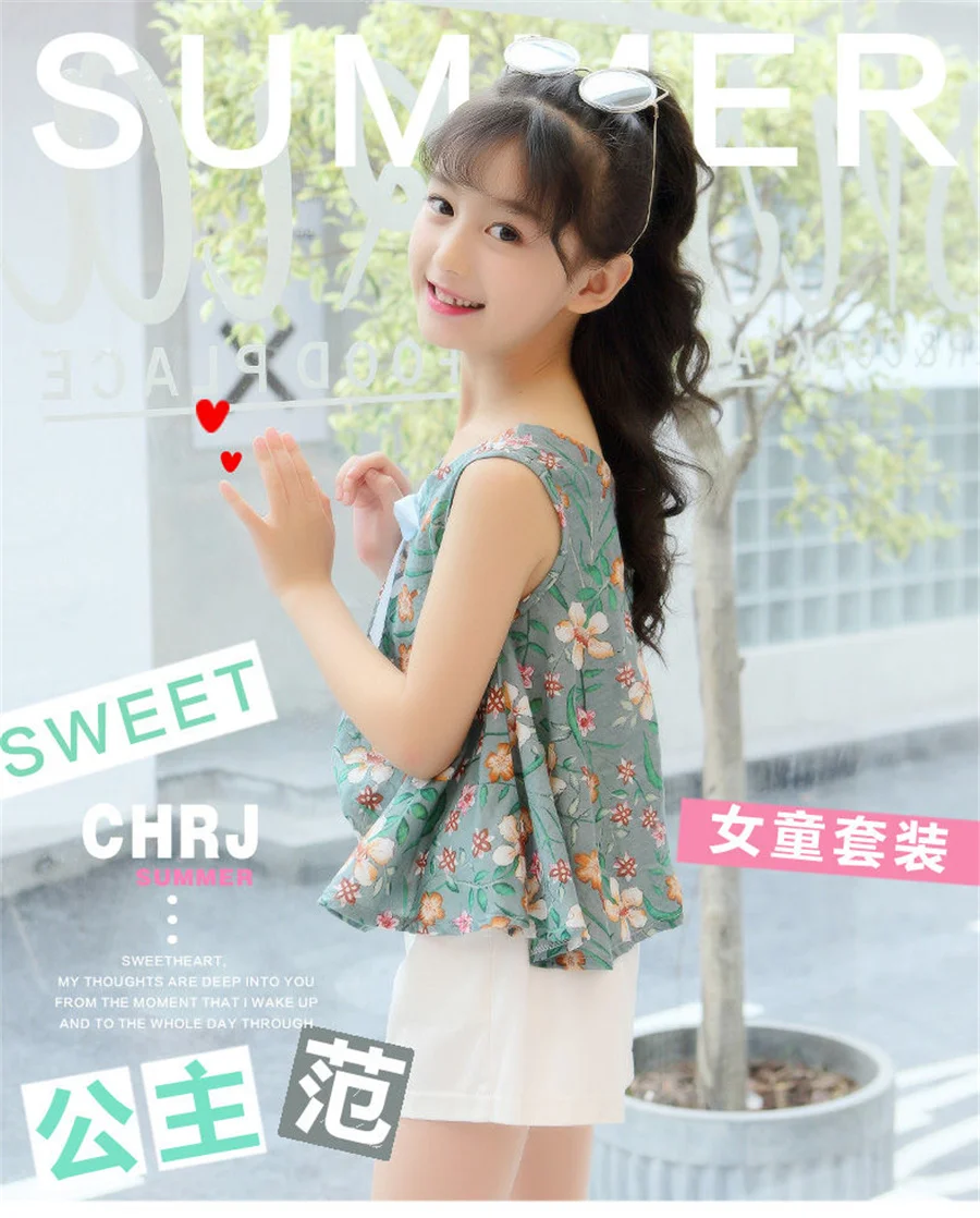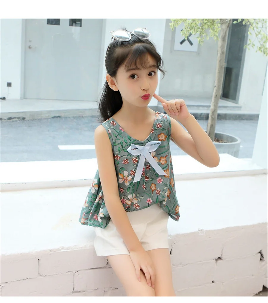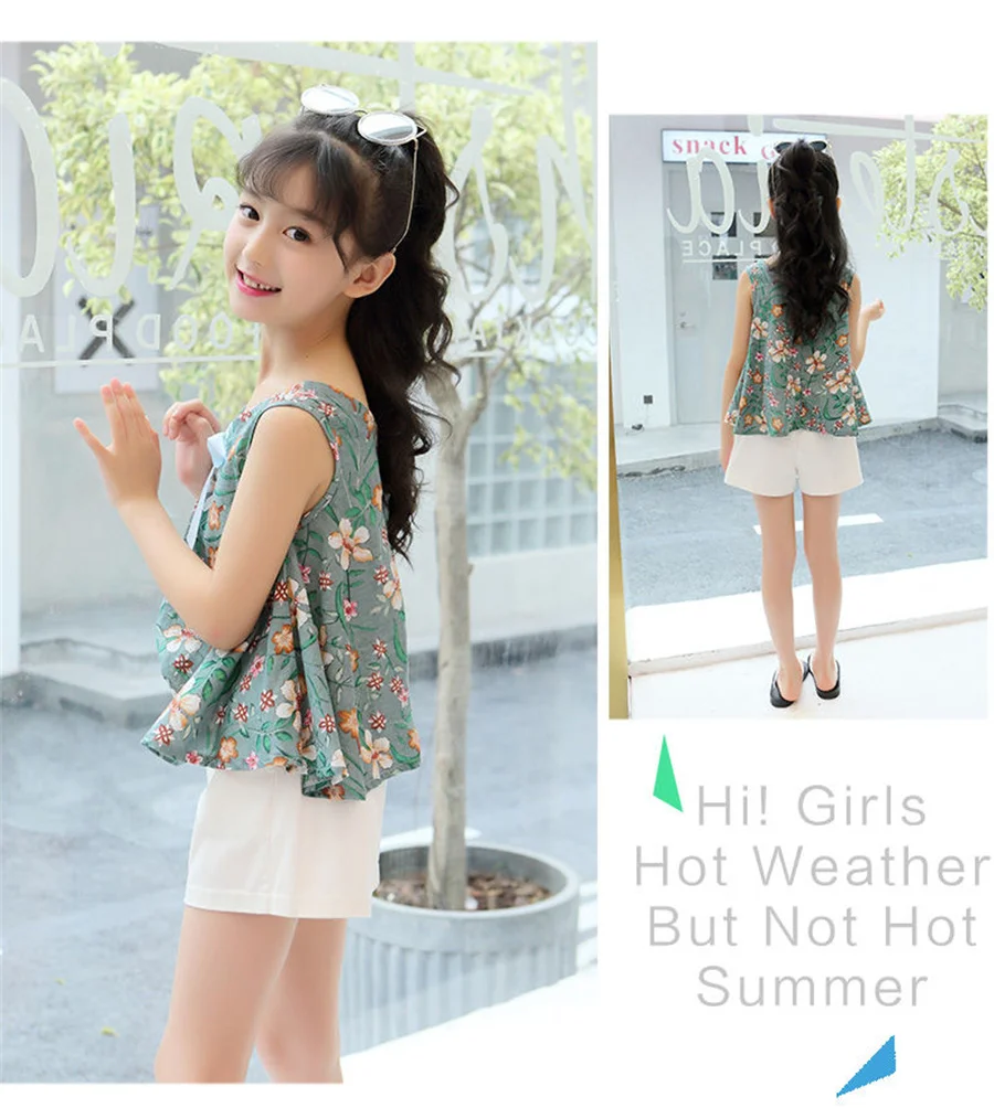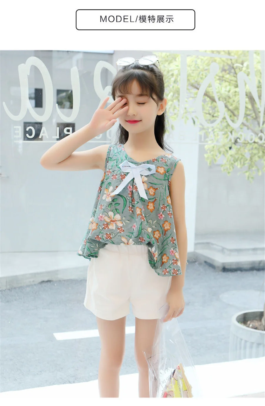 2021 летний комплект одежды для девочек, детские топы без рукавов и шорты для детей, повседневный костюм для девочек-подростков, спортивный костюм 6, 8, От 10 до 12 лет