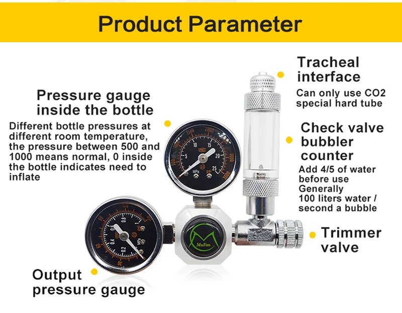 1. Двухметровая конфигурация может четко показать рабочий статус системы СО2, отсутствие газа, чрезмерное давление или слишком мало с первого взгляда.