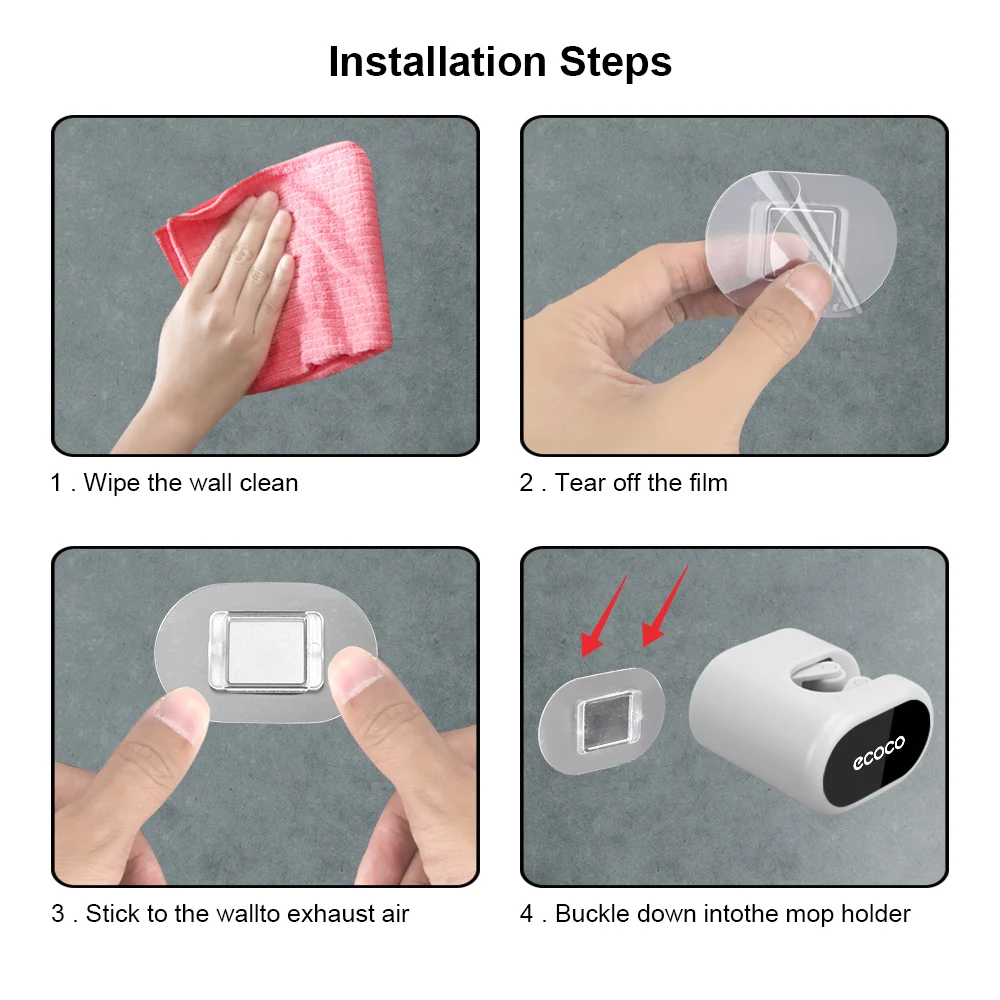 Наклейте его на стену без каких-либо следов и дайте ему стоять в течение 12 часов, прежде чем надеть швабру.