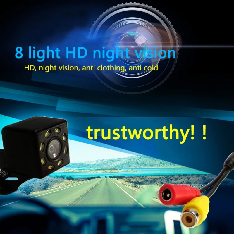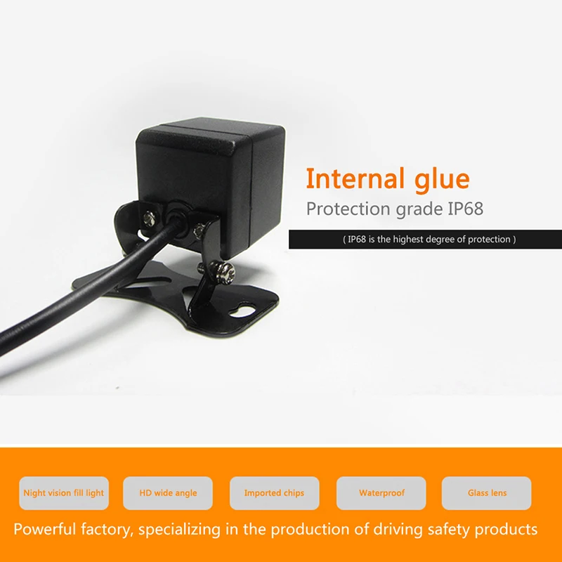 Product parameters: Material: ABS + PC Applicable model: 12 volt car Supply voltage: 12 (V) Lens Angle: Wide Angle 170 degrees (physical Angle) Operating voltage: 9-16V Operating temperature: -40℃-60℃ Adjust the Angle: 0 degrees Resolution: 720 Power: 1 (W) Seismic strength: 5 Scan frequency: 60 Video signal: NTSC Product size: 13*8*5.5cm Weight: 0.145 kg Selling point: 1. The product is suitable for models with a voltage of 12V, including 8 LED lights. The LED lights will synchronously supply power with the rear view light, which will light up when the gear is suspended, and the LED lights will self-fill the light 2. The product adopts IP68 industrial protection production, the use of high pressure glue pouring process, good sealing performance, rain, water, high pressure car wash will not affect the use of the product 3. The lens bracket can be disassembled and installed freely, and the camera cable belongs to the universal interface, which is suitable for a variety of navigation and on-board displays 4. Product list: HD 8 lamp camera, mounting bracket, mounting screws, video cable, power cord, packaging