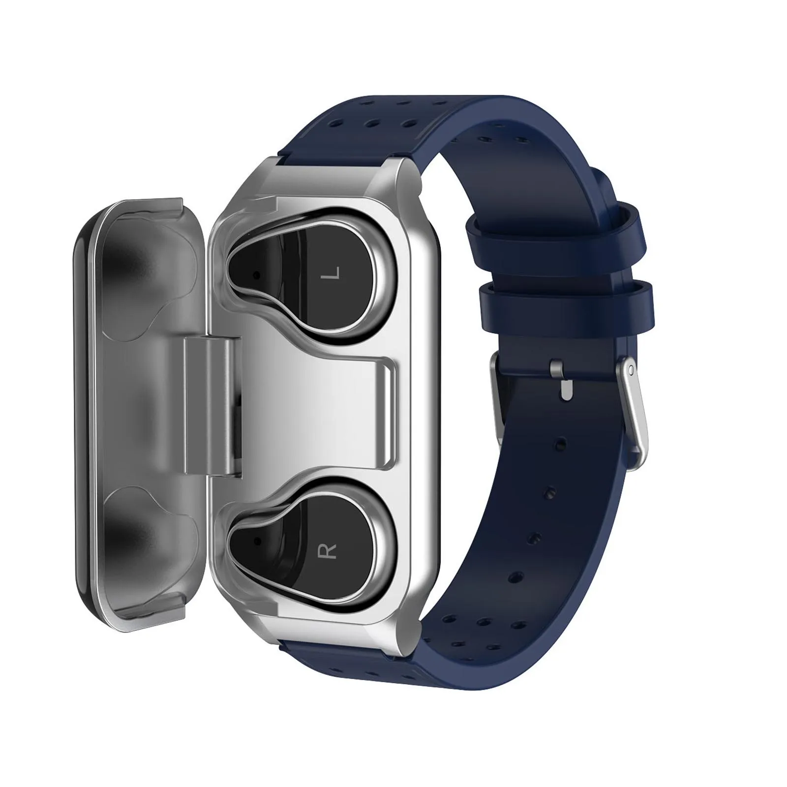 [Дизайн 2 в 1]Все-в-одном кабина спроектирована, это не только часы для отслеживания фитнеса, но и чехол для зарядки беспроводных наушников. Наслаждайтесь удобством, которое приносит новый тип умных вещей.
