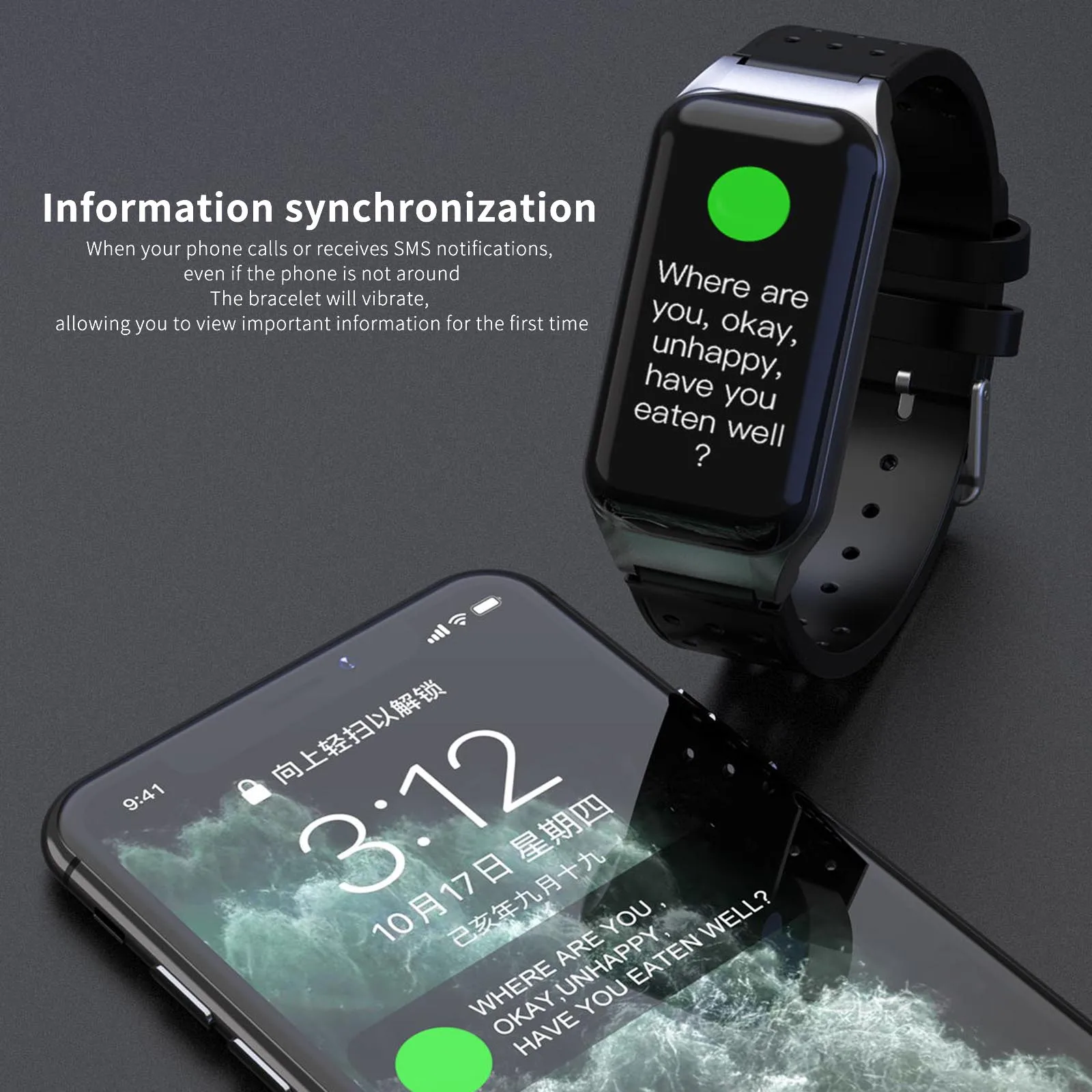 [Умное напоминание]После подключения к телефону, он предоставит синхронный дисплей сообщений, вызовов или социальных приложений, чтобы напомнить вам о важной информации.