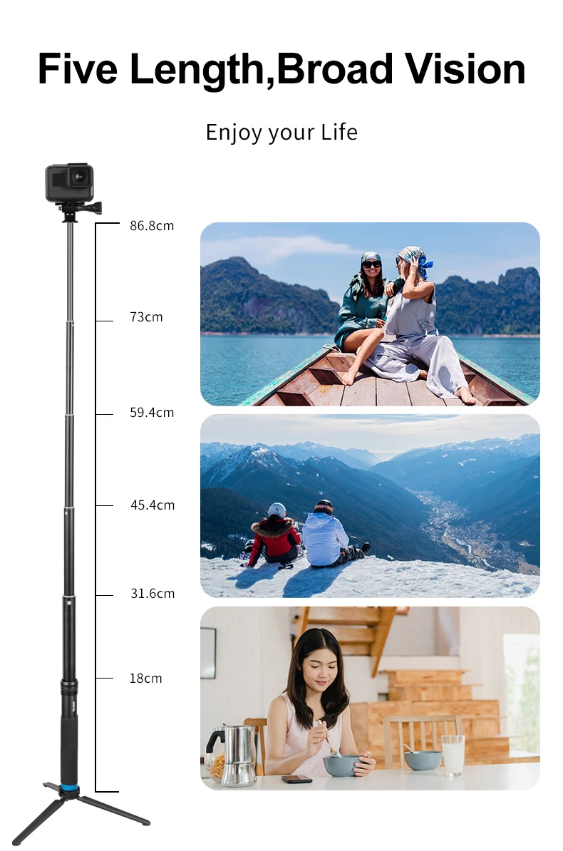 1.Support GoPro,Insta360,Osmo Action,SJCAM,Eken etc action camera.