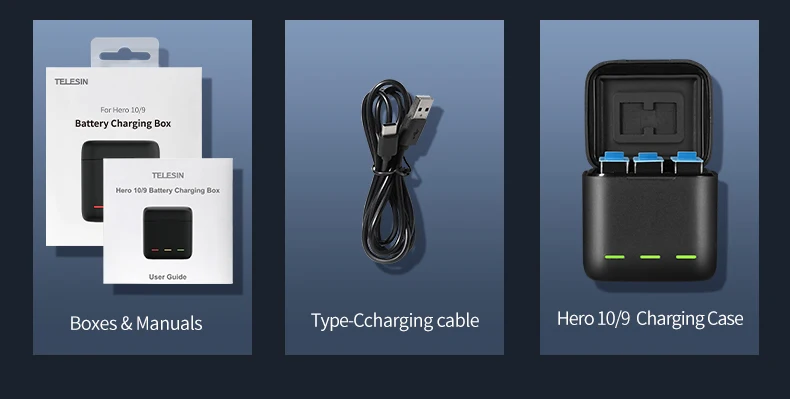 TELESIN Battery 1750 mAh for GoPro Hero 10 3 Ways LED Light Battery Charger TF Card Battery Storage For GoPro Hero 9 Accessories