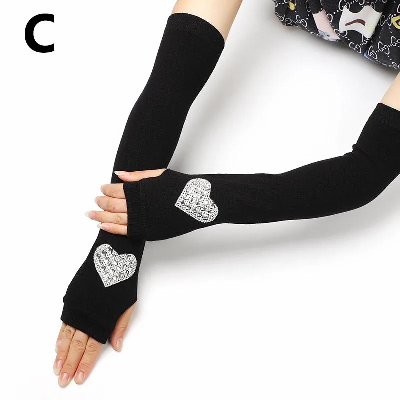 Женские перчатки, зимние, женские, стразы, половинчатые, вязаные, эластичные, на руку, длинные перчатки, теплые, варежки, перчатки без пальцев