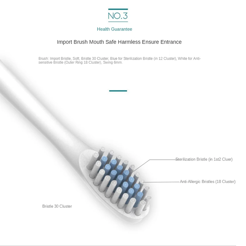 2. Щадящий режим: 30000/мин может щетка для обрезания лишней пены на зубах, подходит для второго чистка.
