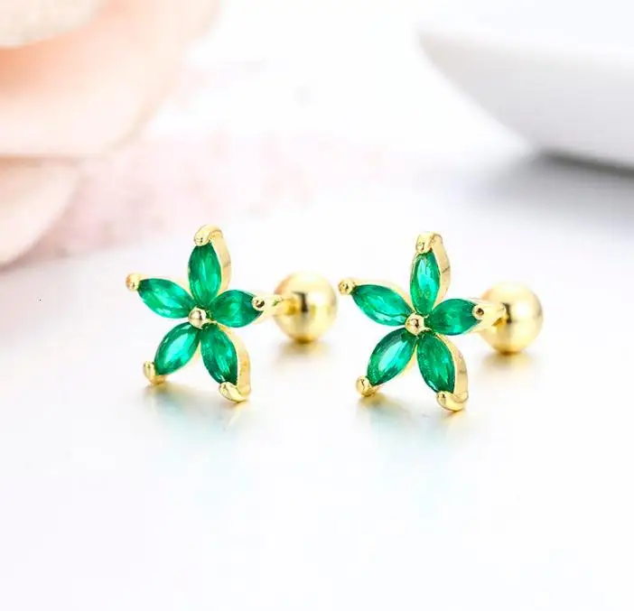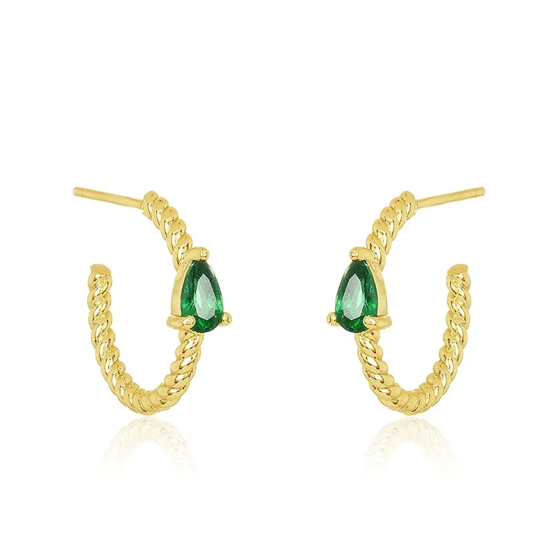 [Тип изделия]: серьги-гвоздики с зелеными кристаллами циркония