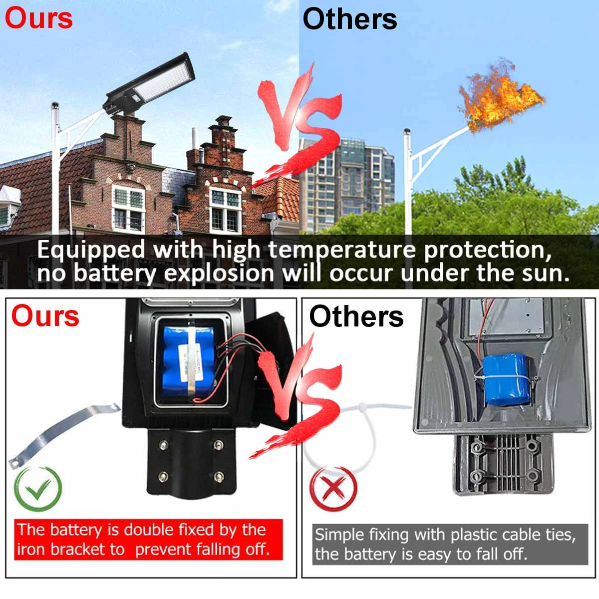 【Обновление панели солнечных батарей 】88/136bright светодиодный, Powerful2400/4800 люмен выход солнечного света. Литий-железо фосфатная батарея 16000/24000 мАч является взрывозащищенной, обеспечивая долгосрочное освещение и долговечность, обеспечивая хорошее освещение для вашего гаража, сада и прохода.