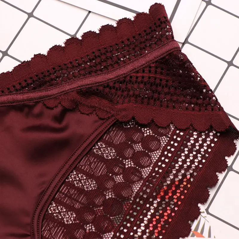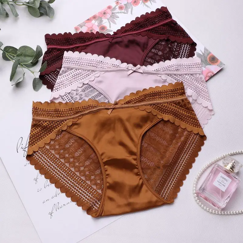 Сексуальное женское нижнее белье, атласные высококачественные кружевные дамские трусики с бантом, французские романтические трусики со средней талией, привлекательная сумка, трусы с вырезами для ягодиц