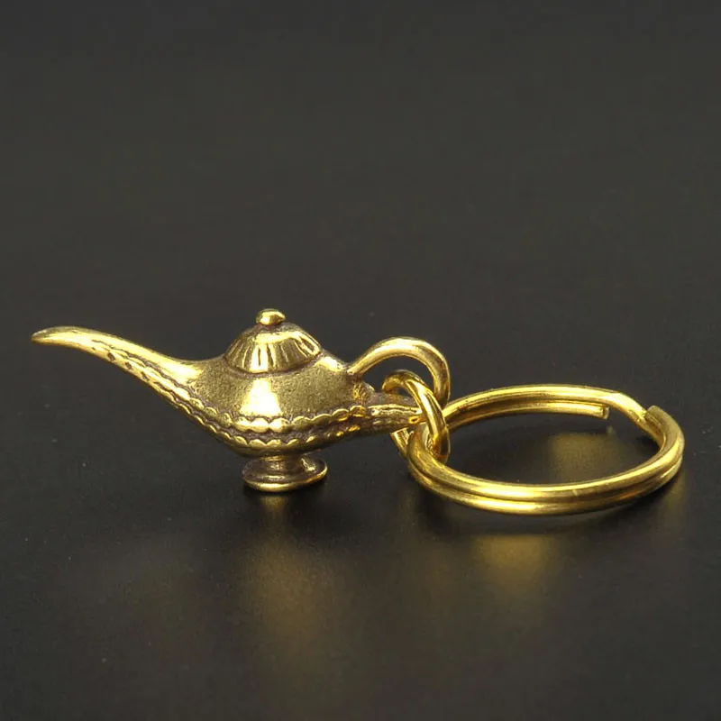 Ретро латунная Волшебная Лампа Алладина мужской кулон-брелок для автомобиля украшение безделушка металлическая медная масляная лампа брелок