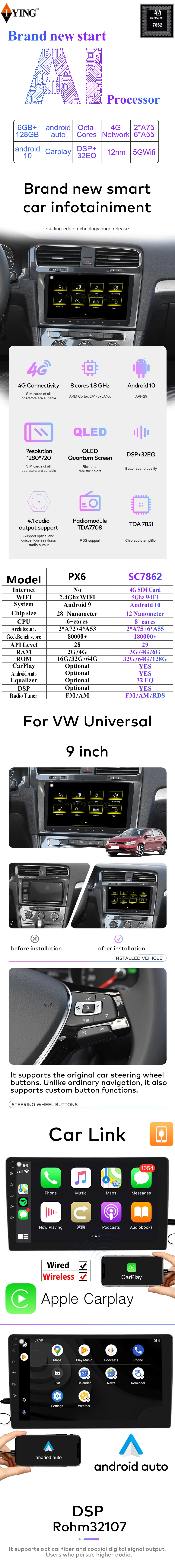 DescriptionAndroid Auto Radio Carplay For VW/Seat/Skoda/Passat/Golf/Pol Android 10 Car Multimedia Player 4G GPS Car Radio DSP QLED Screen