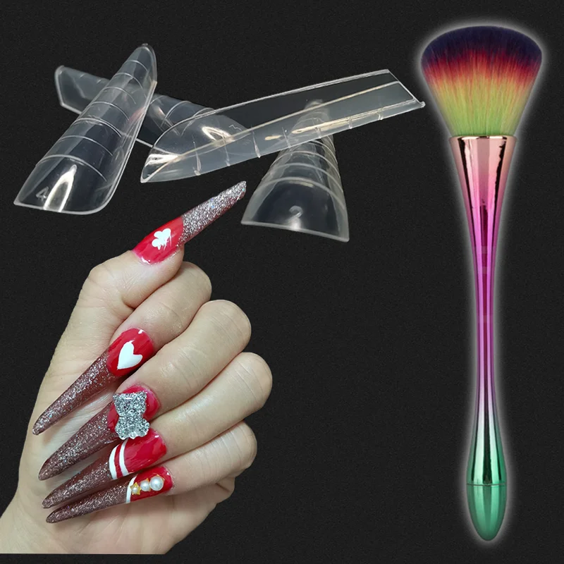 Характеристика: Форма для наращивания ногтей Щетка для пыли Дизайн ногтей, ручка с кисточкой 1. Набор двойных форм для ногтей 2. Полная/половина покрытия ногтей формы 3. Щетка для очистки ногтей от пыли 4. Дизайн ногтей, ручка с кисточкой плоская рисованная линия маникюрные инструменты для ногтей
