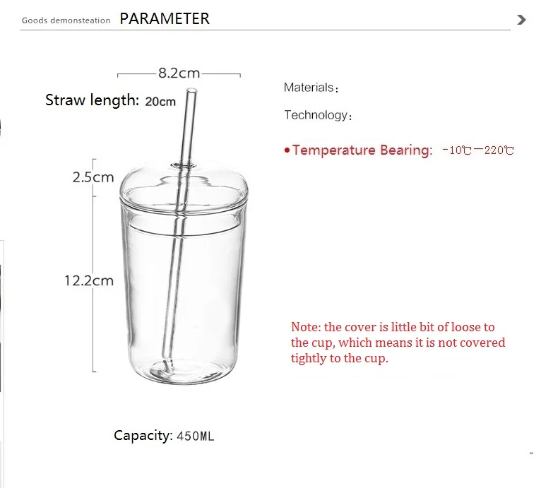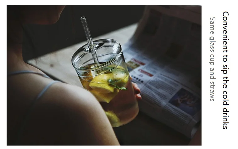 400ml-500mlCreative прозрачная стеклянная чашка для воды с крышкой и стеклянной соломой