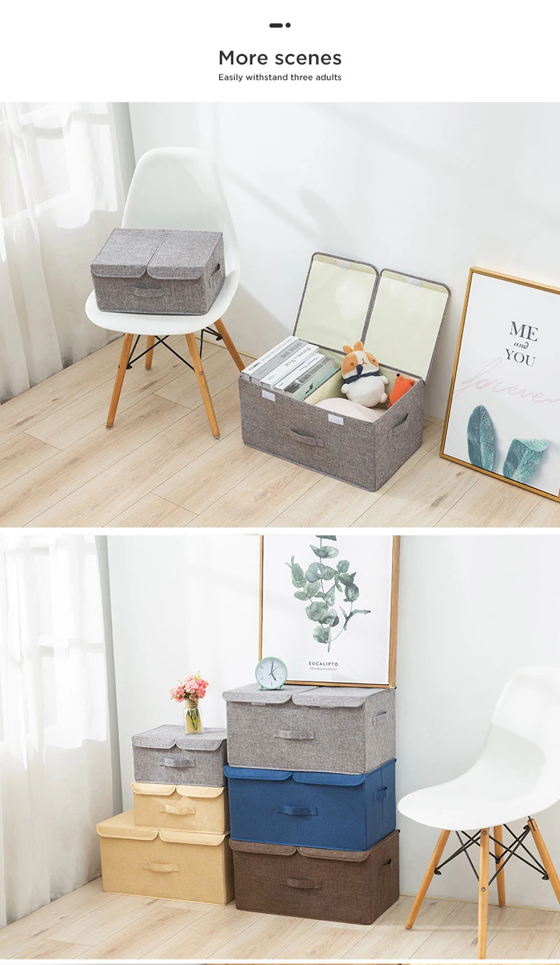🏠Высококачественная ткань: изготовлена из льняной ткани, которая является прочной и экологически чистой. Эти складные ящики для хранения используют простой и практичный дизайн, который является стильным и классическим идеальным сочетанием.