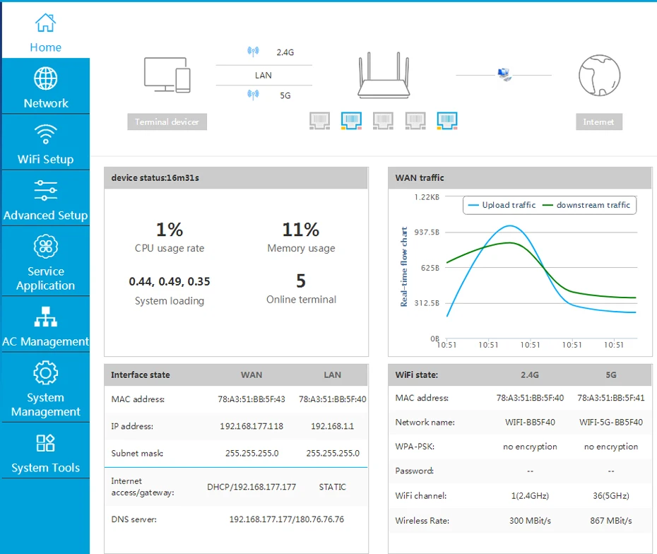 Поддержка 80.11ac/802.11a/802.11n/802,11g/802,11 bnetwork протокол, максимальная скорость передачи данных может быть 1300 Мбит/с (2,4G 300 Мбит/с + 5G 867 Мбит/с)