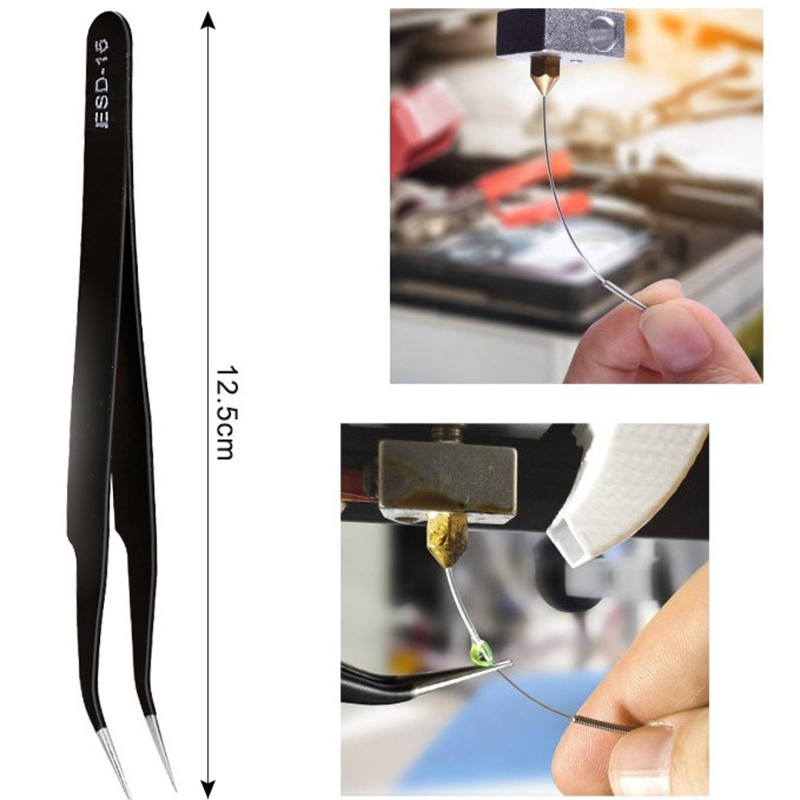 3. Пинцет: 3d-пинцет хорошо подходит для обслуживания сопла и очистки лишнего материала поддержки; Это антистатический, Немагнитный изогнутый точный пинцет