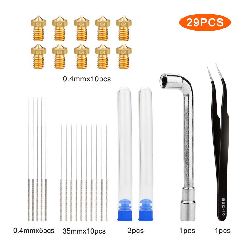 1. Сопла и набор для чистки: посылка включает 5 штук 0,4 мм Насадка для чистки игл и 10 штук 0,35 мм иглы упакованы в один безопасный контейнер.