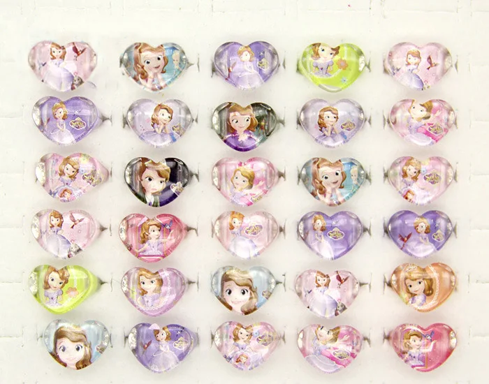 12 шт./лот, вечерние кольца принцессы Софии на день рождения, акриловые кольца с кристаллами для девочек, вечерние кольца для детей, подарки